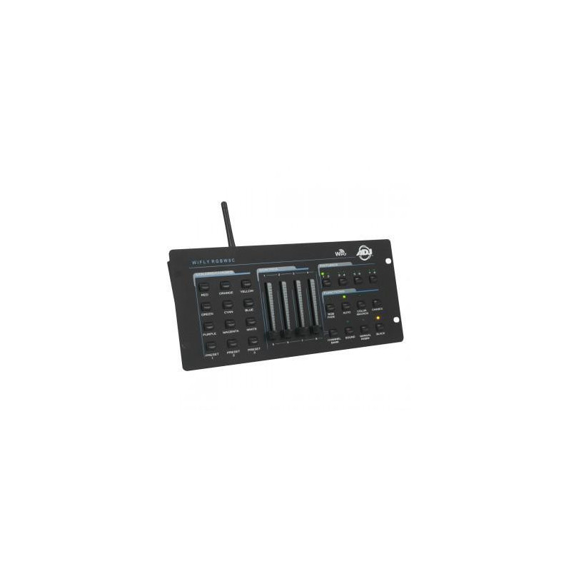 - Kompaktowy sterownik DMX-512 dla urządzeń LED RGB, RGBW i RGBA z WiFLY nadajnikiem, bezprzewodowym DMX (również kompatybilny z tradycyjnym podłączeniem przewodów DMX)
