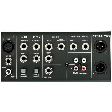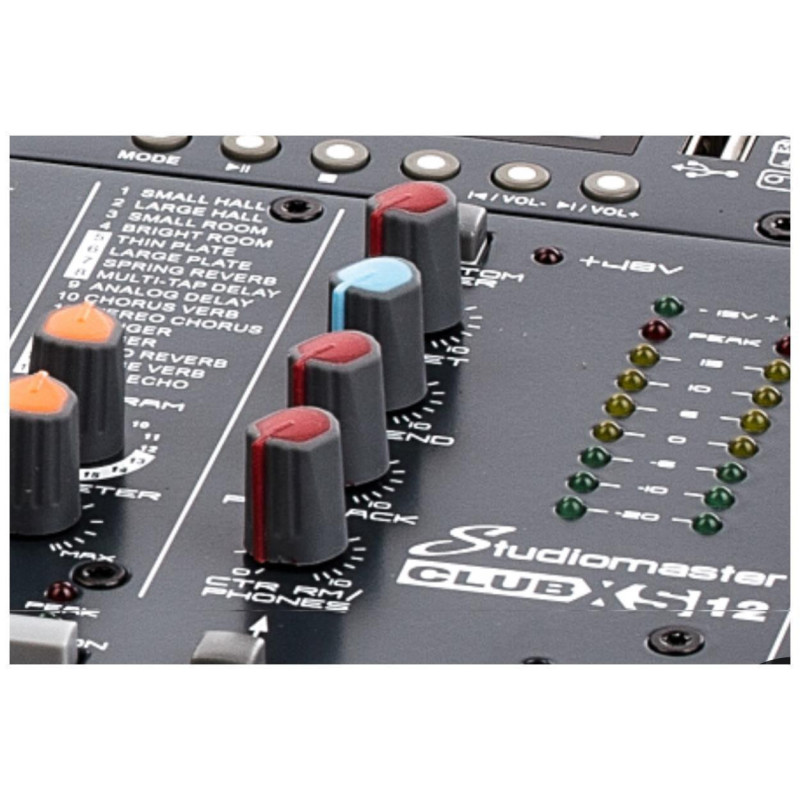 Studiomaster CLUB XS 12 wyposażono w 8 torów mikrofonowych, 2 tory stereofoniczne, procesor efektów, odtwarzacz plików MP3 z kart SD lub pendrive, rejestrator, odbiornik bluetooth.
